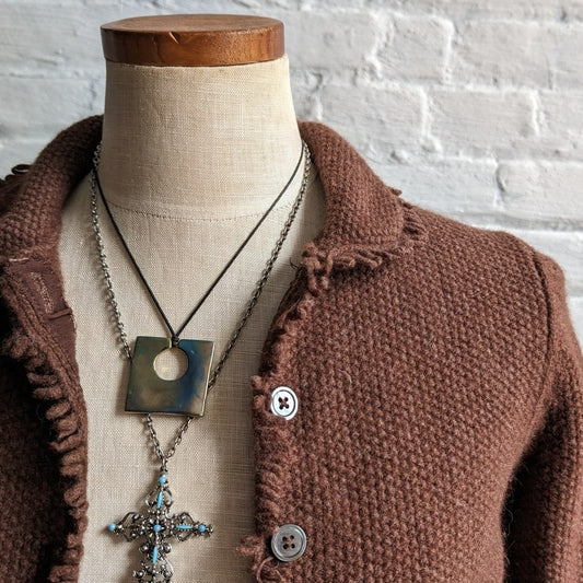 Vintage Brown Wool Fuzzy Knit Cardigan Witchy Earthy Fairycore Furry Sweater Top