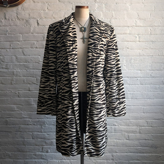 Vintage Black Striped Fuzzy Trench Coat Zebra Tiger Animal Print Teddy Jacket