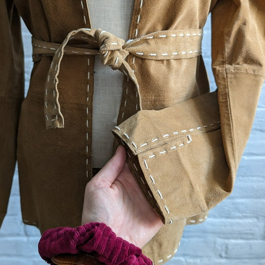 90s Vintage Western Minimalist Suede Jacket Neutral Camel Leather Cowgirl Blazer