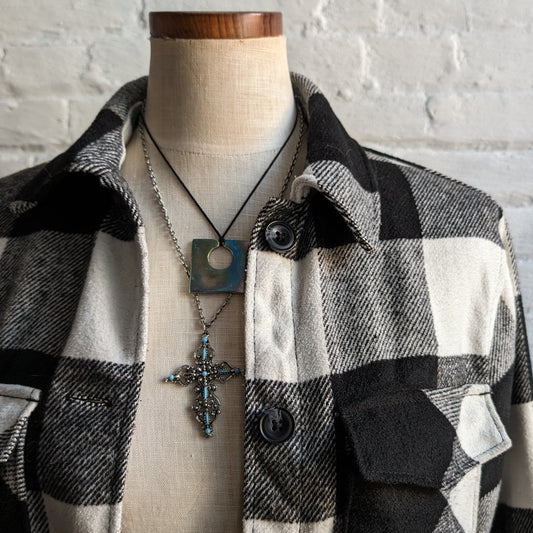 Vintage Checkerboard Plaid Flannel Shacket Gorpcore Oversize Grunge Chore Coat
