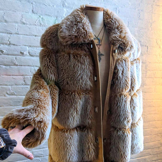 90s Vintage Chic Minimalist Vegan Fur Coat Mob Wife Plush Boho Penny Lane Jacket