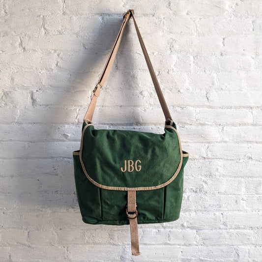 Vintage Minimalist Green Canvas Messenger Bag Preppy Satchel Laptop Crossbody