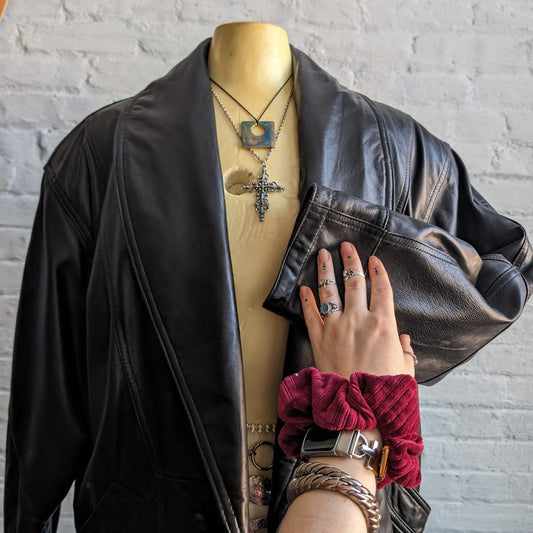 Vintage Black Leather Jacket Oversize Grunge Goth Biker Minimalist Trench Coat