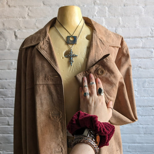 Vintage Genuine Suede Leather Penny Lane Duster Groovy Furry Trench Coat Jacket