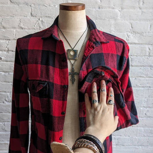 90s Vintage Grunge Fairy Flannel Minimalist Boyfriend Oversize Earthy Plaid Top