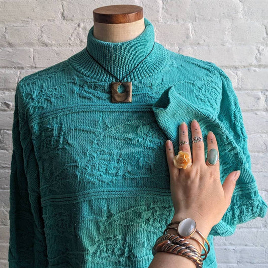 90s Vintage Floral Minimalist Chunky Cable Knit Sweater Oversize Turtleneck Top