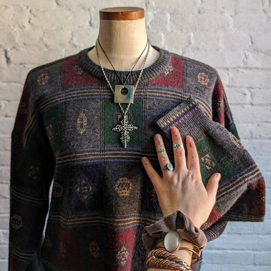Vintage Wool Knit Oversize Grandpa Sweater Grunge Cottagecore Dark Academia Top