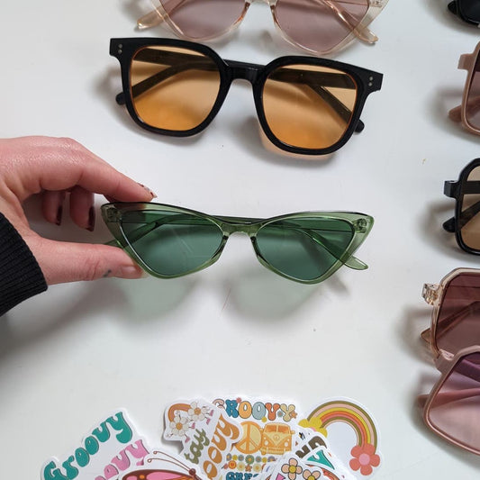 Y2K Barbie Festival Retro 60s style CatEye Sunglasses Muted Green Sunnies Shades