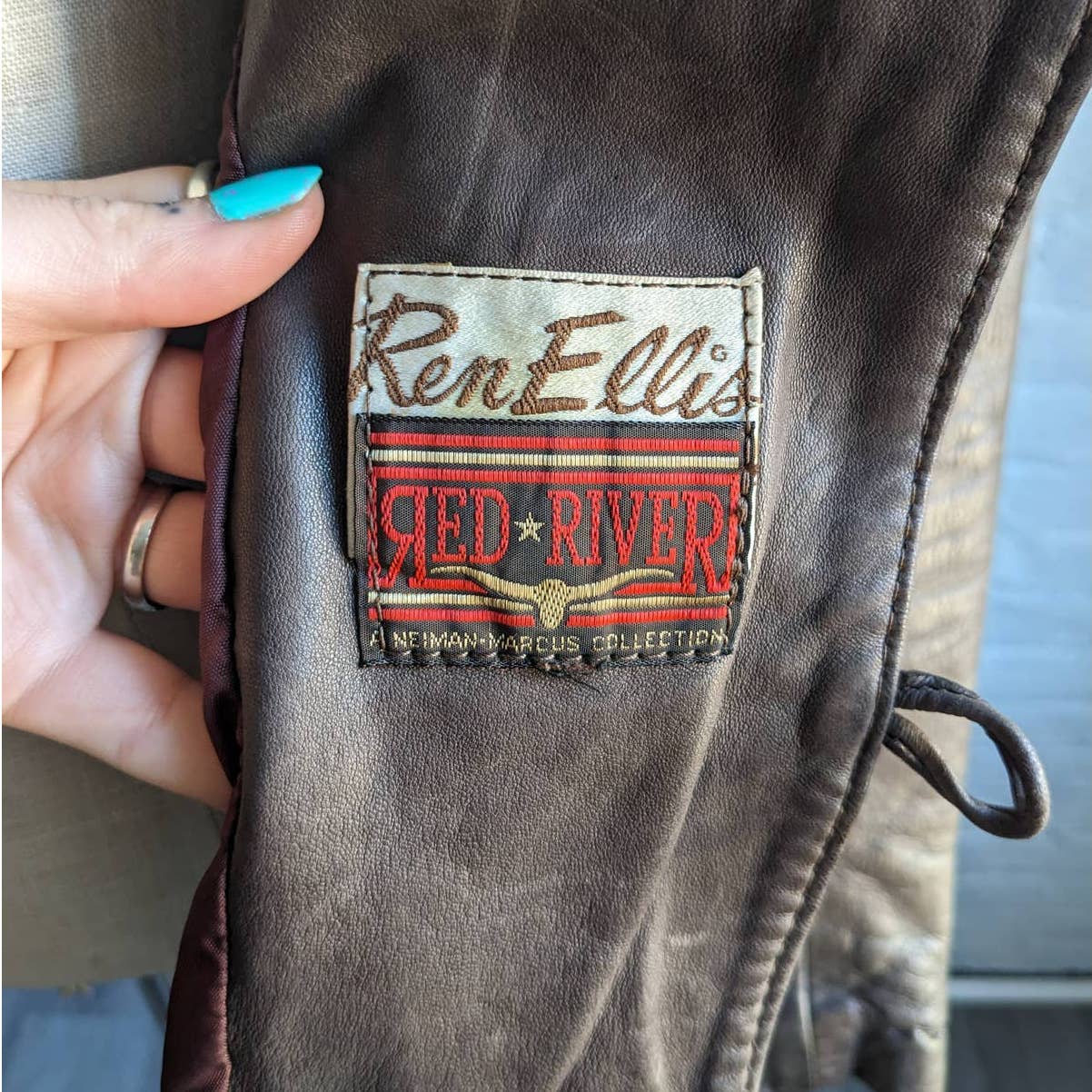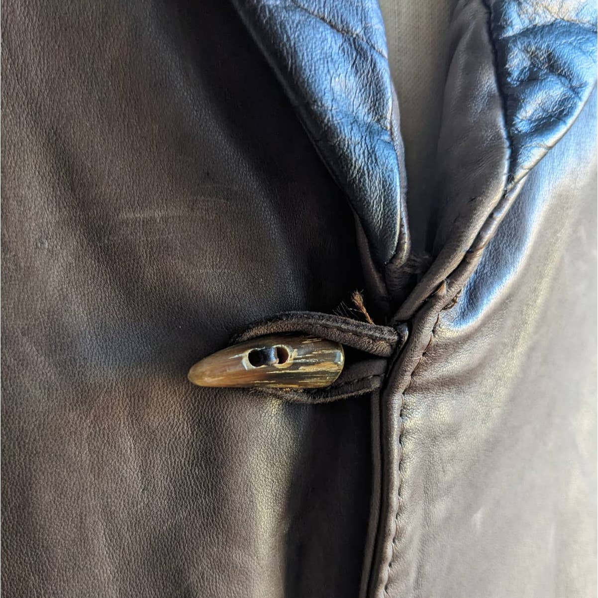 Insane collector piece!! Amazing vintage Ren Ellis genuine leather jacket made for the Neiman Marcus collection. Gorgeous buttery soft medium brown leather with asymmetric raw hem. Deep brown fringe giving that incredible two tone look. Accent rounded collar in black, genuine fur details throughout. Faux wood bone toggle front closure, front pockets, fully lined. Longline silhouette. Excellent quality light to mid-weight leather for your collection.