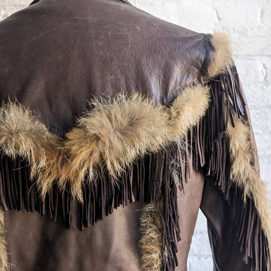 60s 70s Vintage Leather Coyote Fur Fringe Jacket Genuine Cowboy Western Coat