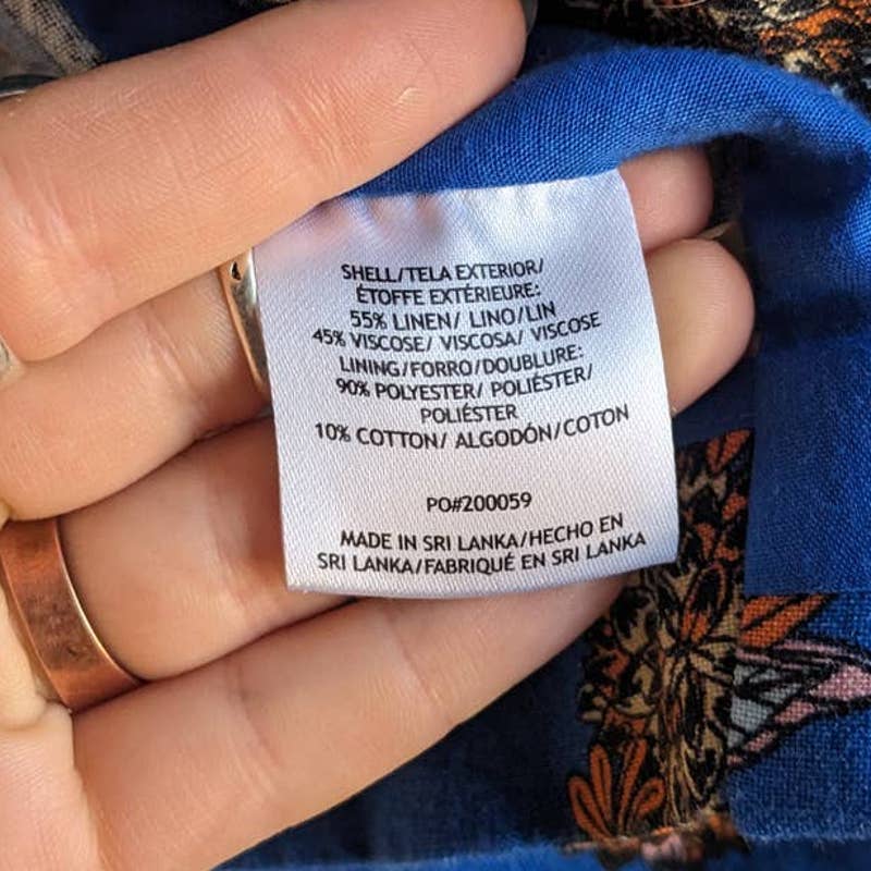 Looove this one! Perfect fall blazer with amazing color pop! Gorgeous vibrant blue statement blazer with delicate allover retro floral print. Super soft and breathable linen blend in bold blue and earthy muted rust orange, faded dusty rose and delicate yellows. Structured shoulders, swirly pearlized single button front and cuffs, notched collar and elongated lapels, fully lined, front pockets! Some wrinkling from storage as linen does. Excellent quality light to mid-weight shacket blazer.