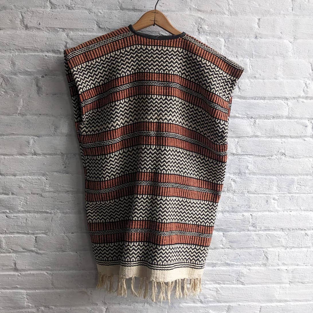 70s Vintage Blanket Vest Western Handmade Woven Fringe Traditional Mexico Serape