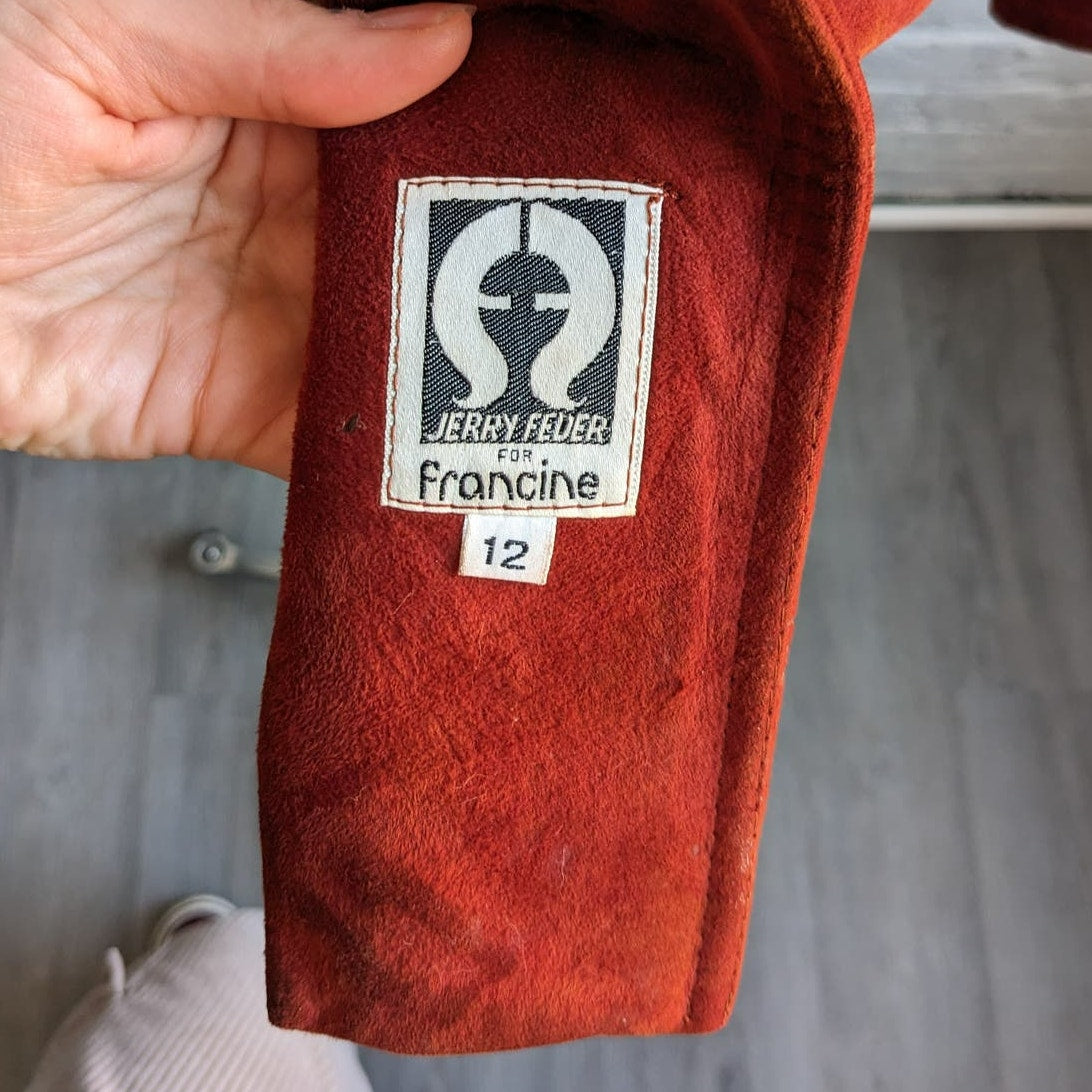 70s Vintage Red Suede Trench Coat Biker Jacket Western Minimalist Leather Duster