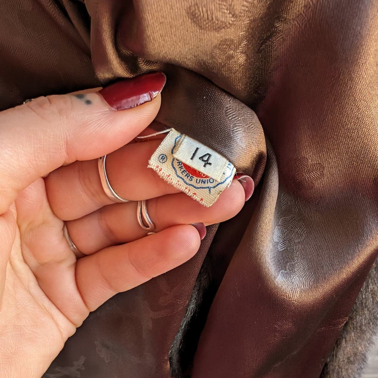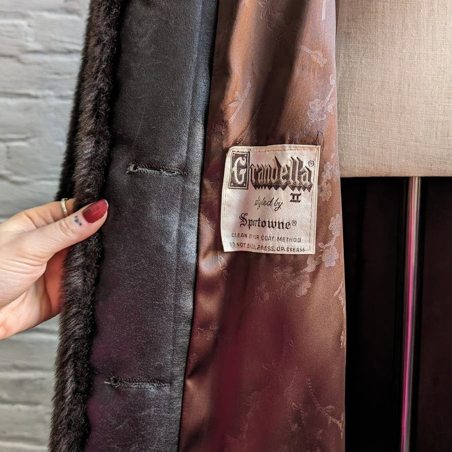70s Vintage Vegan Mink Fur Trench Coat Mob Wife Black Brown Penny Lane Jacket