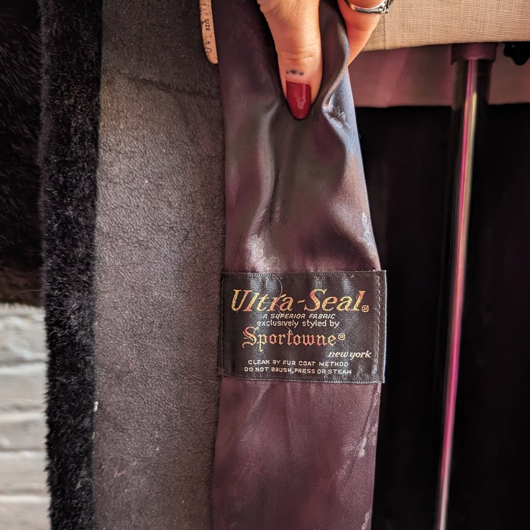 70s Vintage Vegan Velvet Fur Trench Coat Mob Wife Black Brown Penny Lane Jacket