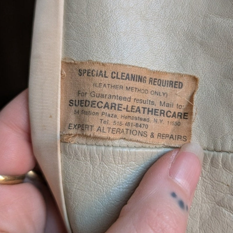 LOVE!! Gorgeous vintage genuine leather penny lane duster in rare creamy white with sexy shaggy fuzzed out faux fur trim! Major 70s almost famous boho babe does classy minimalist glam vibes. Neutral earth tone ombre brown faux fur princess trim. Cinched belted waist + leather buttons for the perfect fit. Pockets! Longline silhouette, midweight perfect for layers. Minor wear on lining consistent with age. Gently used, in excellent vintage condition.