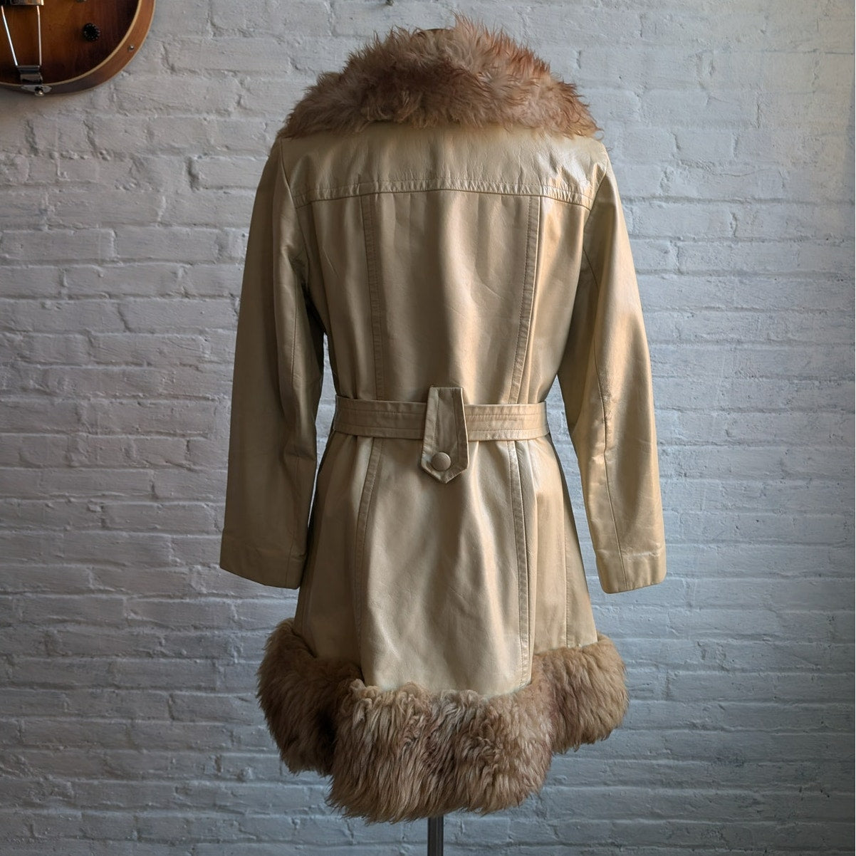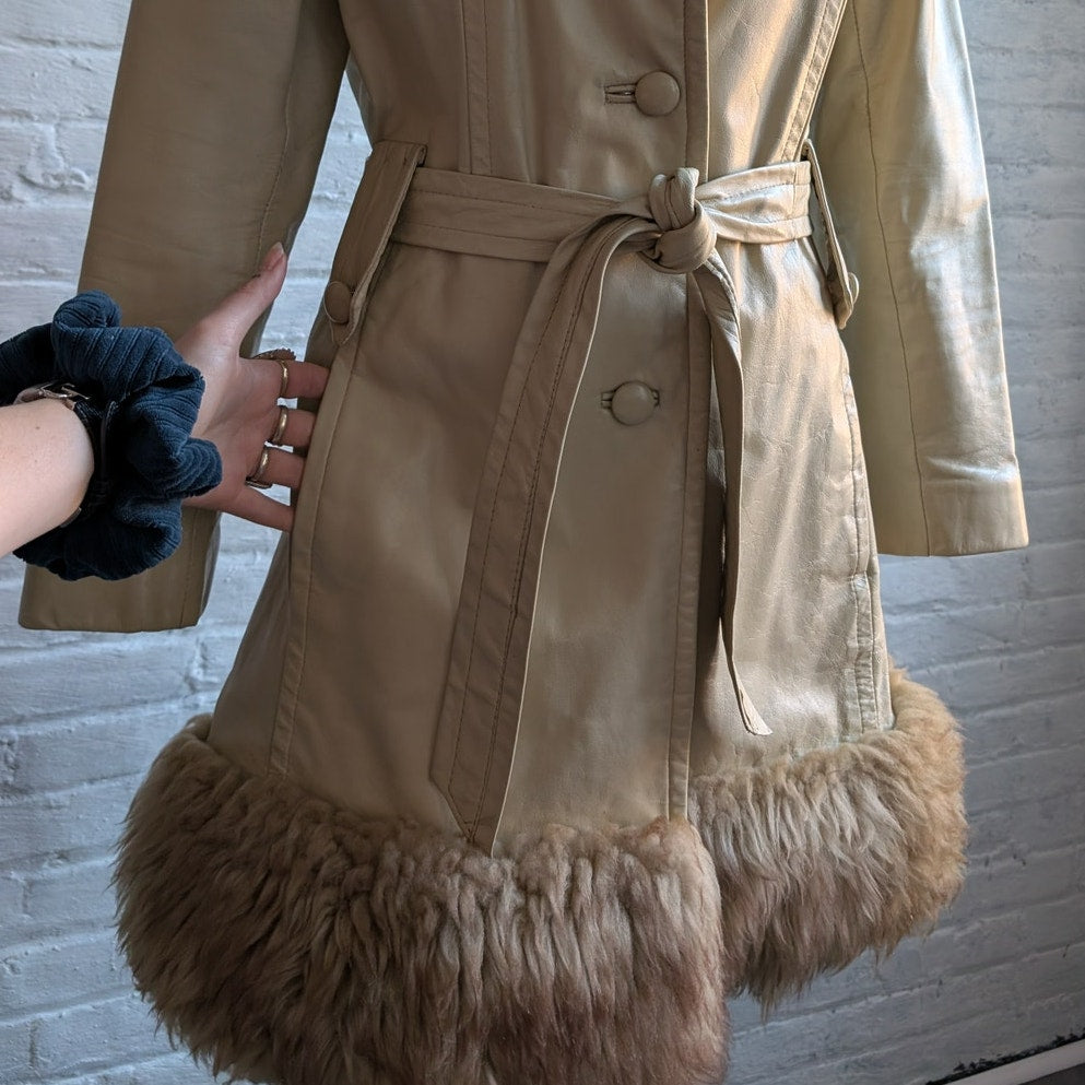 70s Vintage White Leather Penny Lane Coat Cream Fur Groovy Boho Afghan Jacket