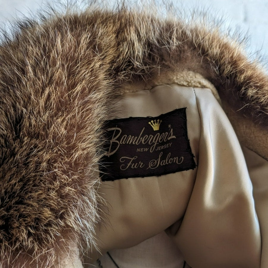 70s Vintage Wool Fox Fur Penny Lane Boucle Coat Groovy Pastel Yellow Shag Jacket