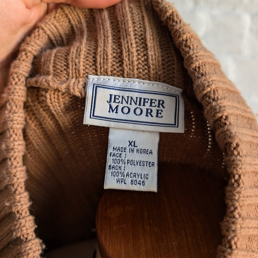 Loving this super soft vegan suede chunky knit sweater jacket! Gorgeous neutral caramel tan brown earth tone hues. 70s boho cowgirl babe does 90s minimalist model off duty vibes. Classic cozy mini mock neck, zipper front closure, pockets. Super stretchy ribbed knit back & sleeves. Slouchy longline silhouette. Light to midweight, perfect for layers. Gently used, in excellent vintage condition.