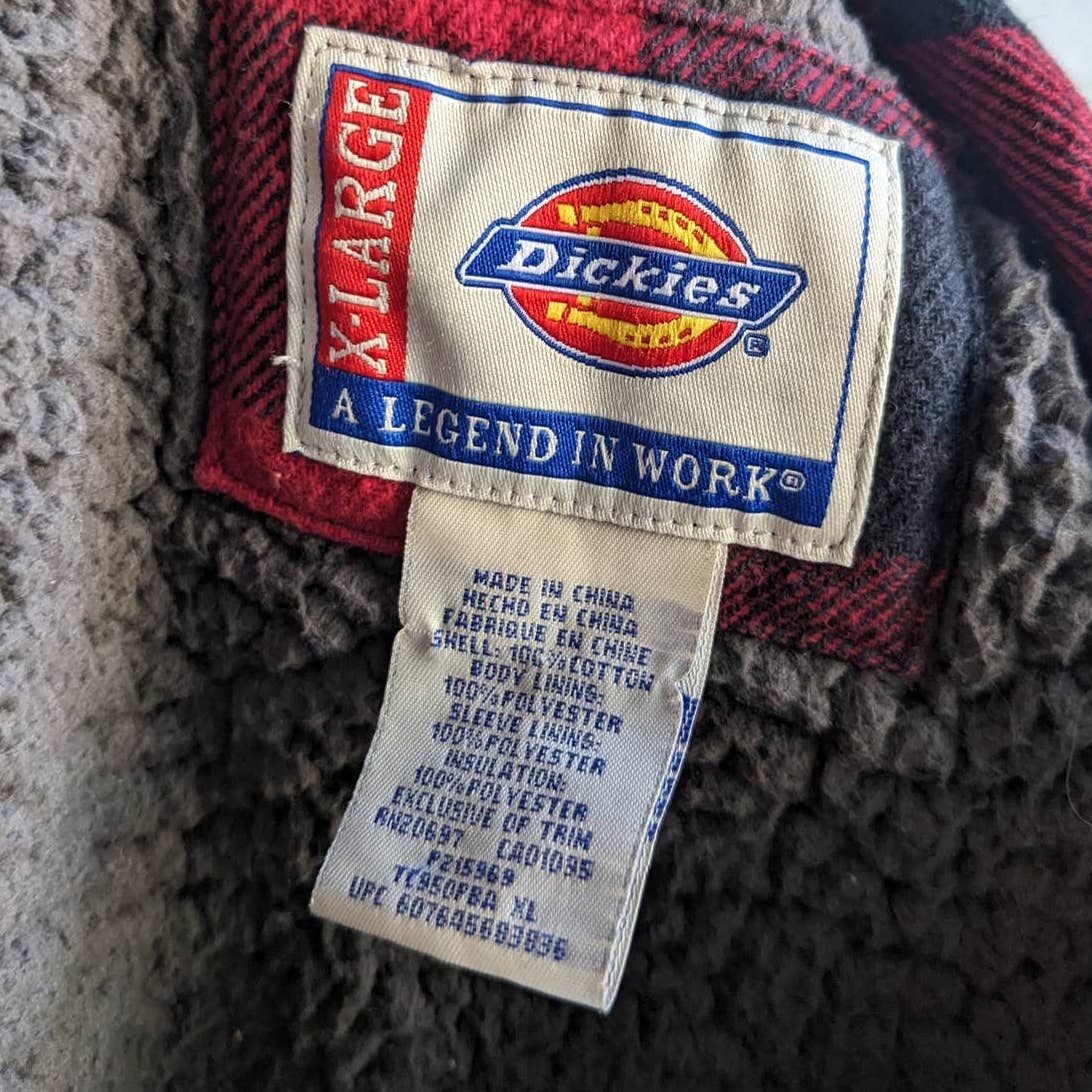 90s Vintage Dickies Red Buffalo Plaid Flannel Jacket Utility Sherpa Blanket Coat
