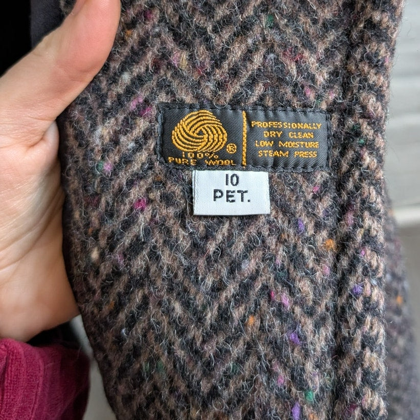 So chic and posh! Classic vintage 100% wool trench in smoky grey tones with the cutest muted rainbow speckles. 60s sexy academia babe does 80s softcore grunge punk. Loving the shoulder pads! Pockets, hidden button closure. Perfect mid to heavy weight cozy warm overcoat. Longline silhouette. Gently used, in excellent vintage condition.