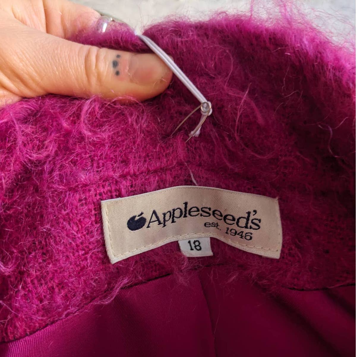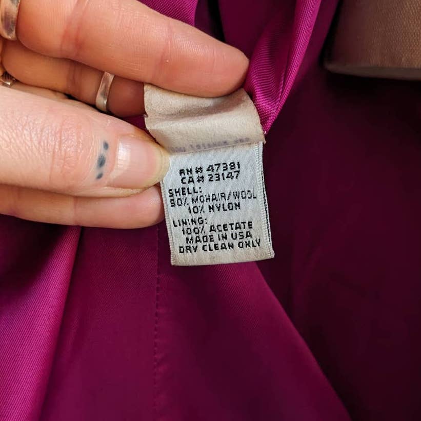 OBSESSED with this fuzzed out furry mohair dream trench! So wild so funky like your favorite mohair sweater but in jacket form! Gorgeous vibrant hot pinky magenta tone. Subtle furry fuzzing gives a soft girl angelic look. 90s trashy chic does 80s barbie boss babe vibes. Longline silhouette, light shoulder padding, dagger collar, swirly button front, pockets! Super soft and so cozy. Lining has a few larger cosmetic tears. Gently used, in excellent vintage condition.