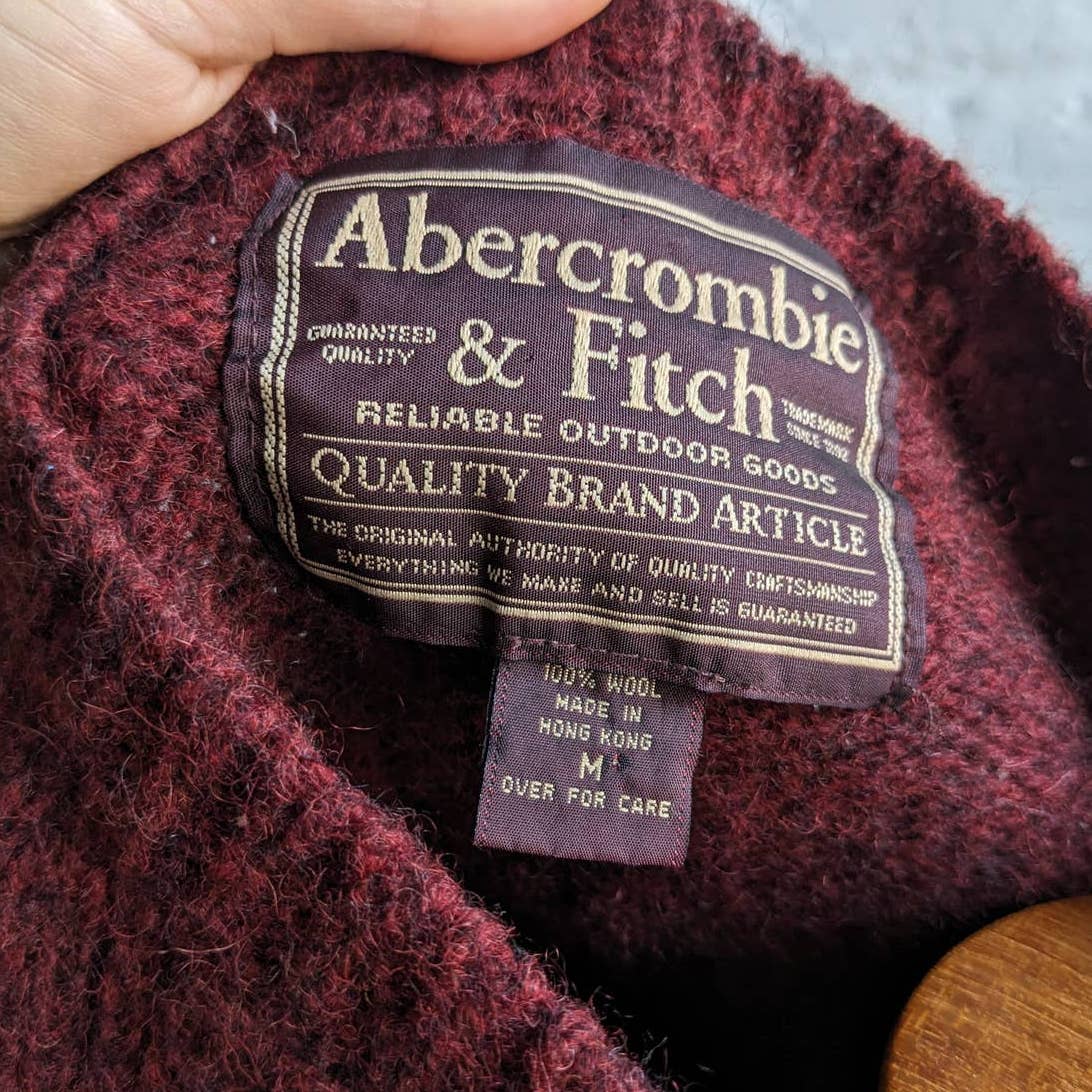 Loving the vintage Abercrombie classic classy Christmas vibes. Rad little chunky knit wool grandpa sweater in muted deep maroon. Earthy grunge green and cream stripe pattern. Minimalist dark academia does woodsy grunge. Ribbed v neckline, cuffs and hem. Fuzzed out look and feel. Beautiful high quality mid-weight 100% wool. Longline silhouette, cozy warm. Gently used, in excellent vintage condition.