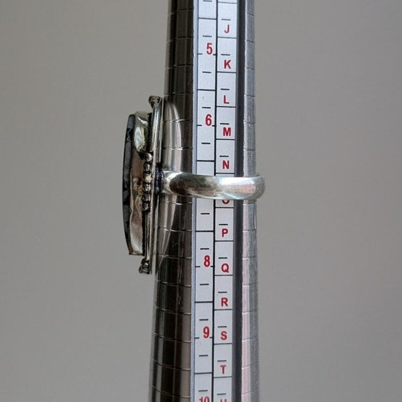 Dark Romance Black White Sterling Silver Ring Retro Vintage Boho Stone Size 7