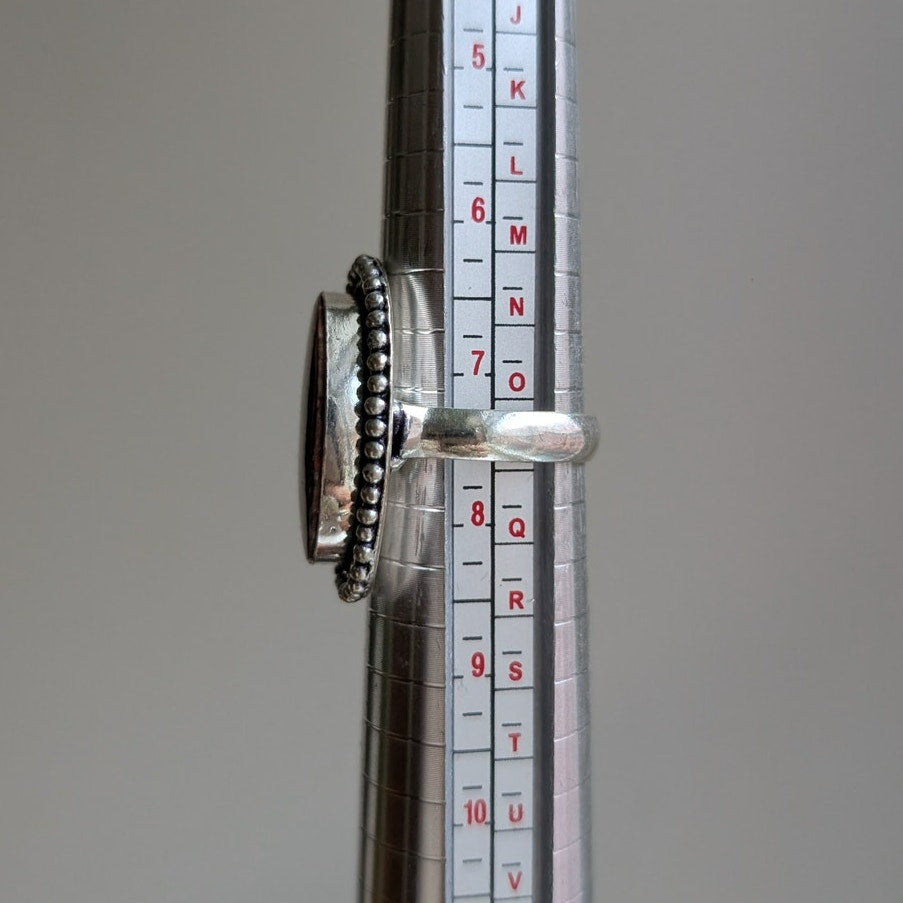 Earthy Brown Rust Natural Stone Ring Boho Chic Sterling Silver Vintage Size 7.5