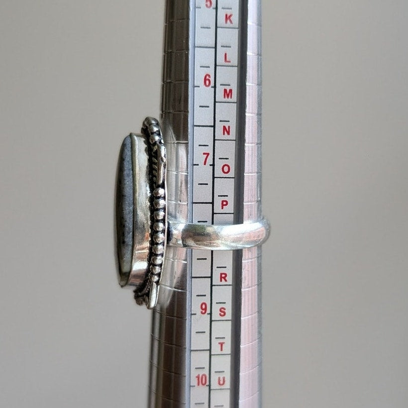 Earthy Green Grunge Sterling Silver Ring Retro Vintage Boho Natural Stone Size 8