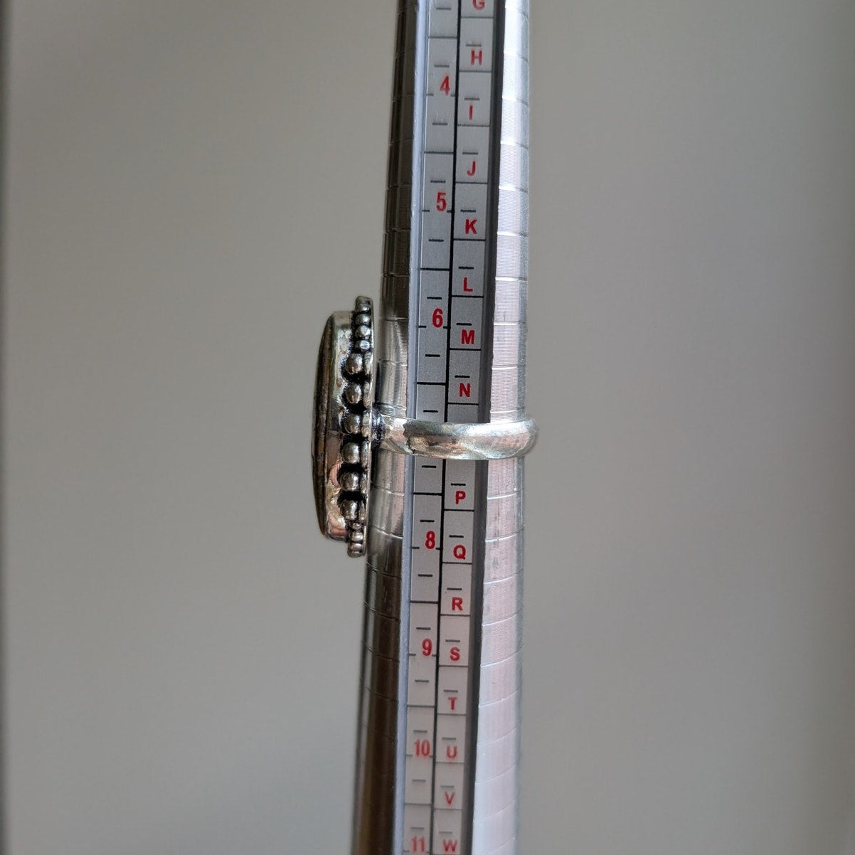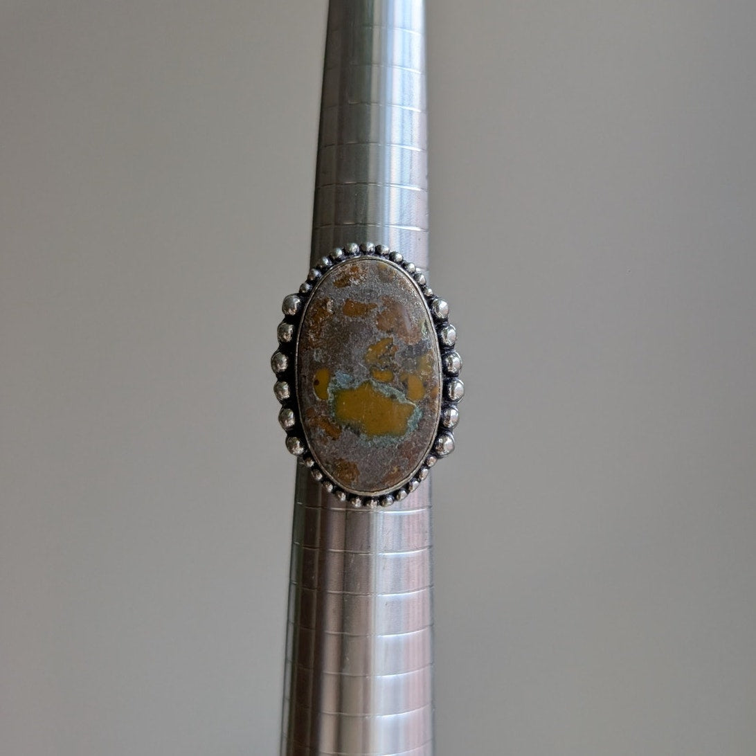 Earthy Green Rust Natural Stone Ring Boho Chic Sterling Silver Vintage Size 7