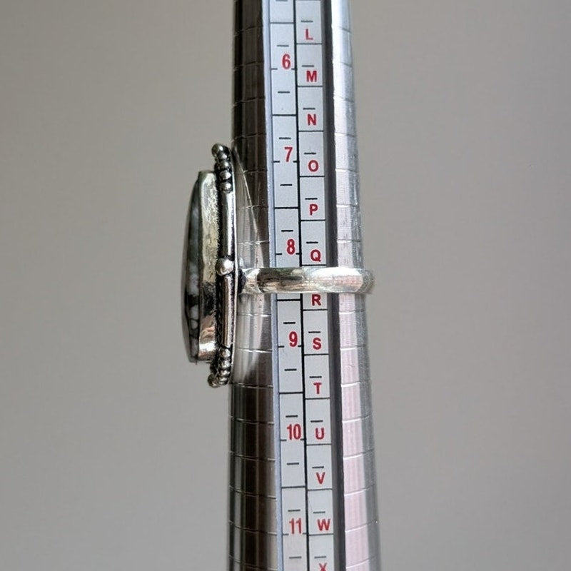 Green Swirl Sterling Silver Ring Size 8.25 Retro Vintage Boho Natural Stone