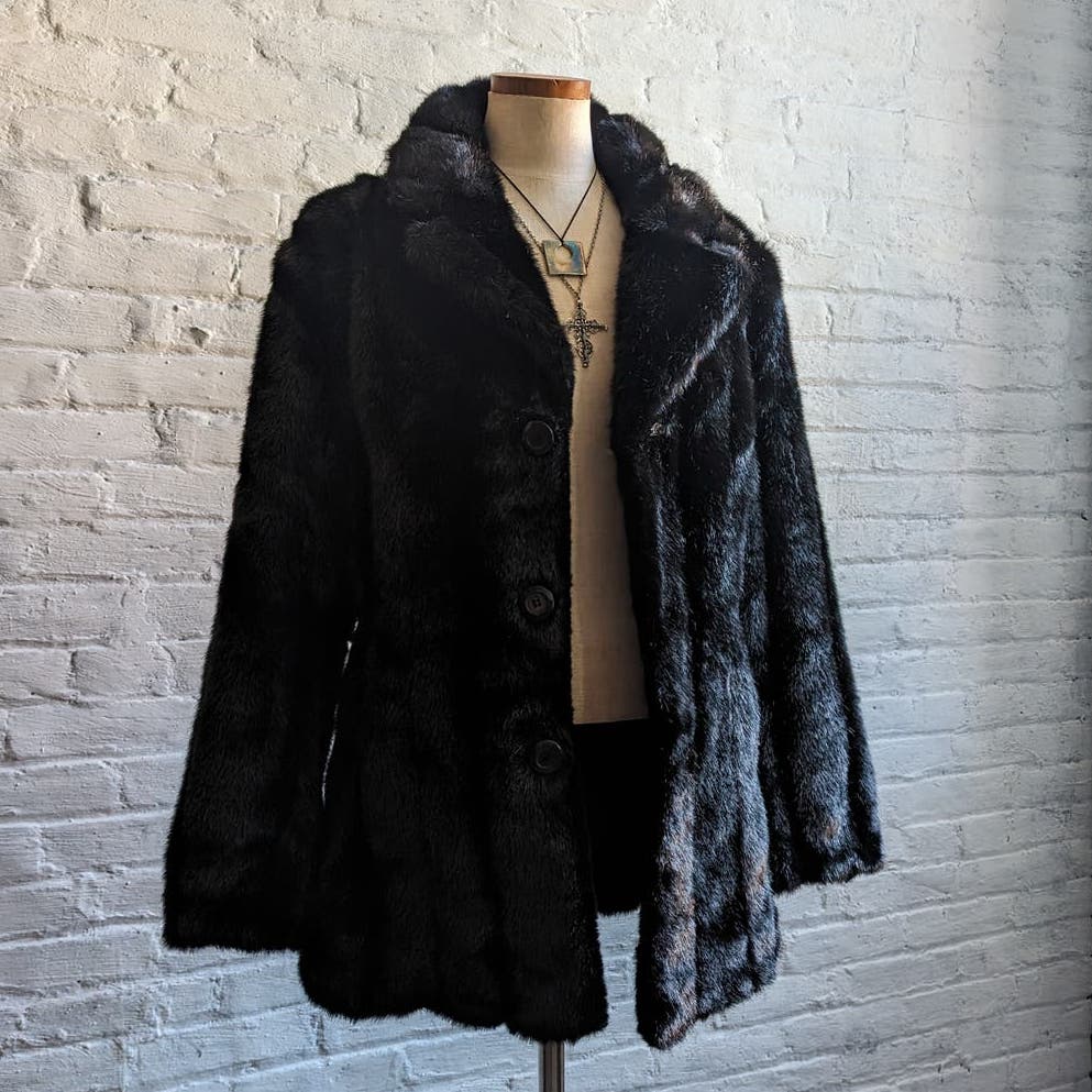 Retro Mob Wife Chic Vegan Fur Silk Coat Minimalist Goth Penny Lane Fuzzy Jacket