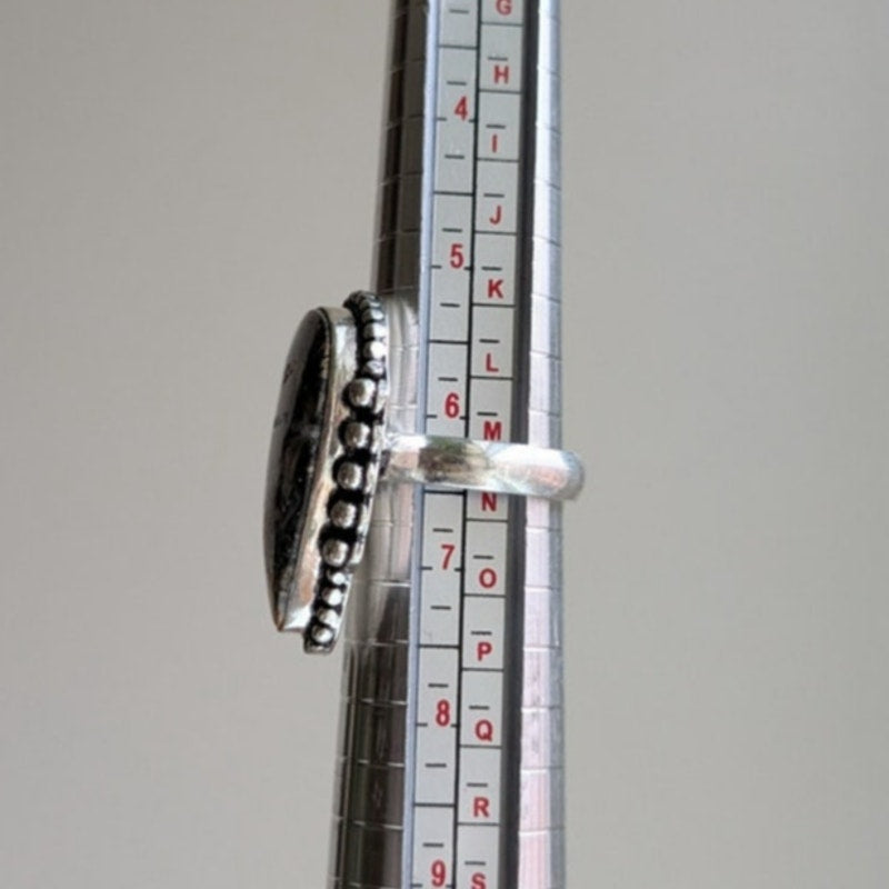 Rusty Red Grey Teardrop Sterling Silver Ring Size 6.5 Retro Vintage Boho Chic