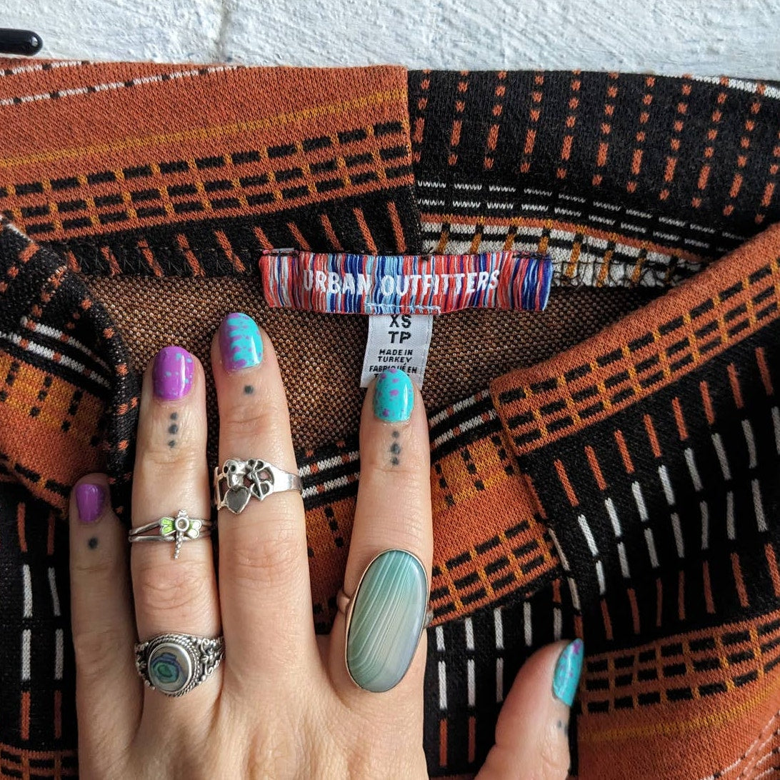 Love! Mega cute and super comfortable highrise jegging style pull-on flares from Urban Outfitters. Dope trippy stripes and psychedelic allover print in gorgoues dark rusty orange, mustard, faded black and cream. Giving 70s hippie desert girl does cozy bed day athleisure vibes. Super stretchy can fit up to a size small. Elastic waist with flared out bottom hems. New without tags.