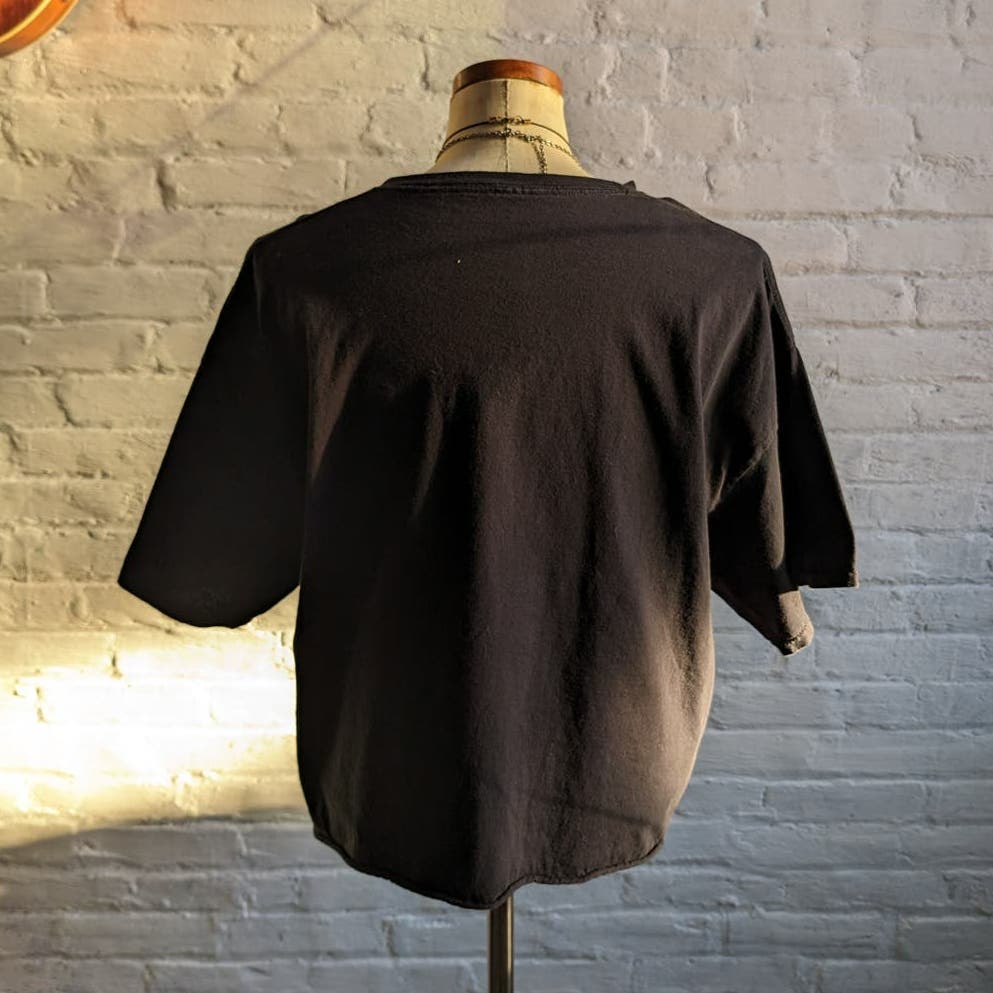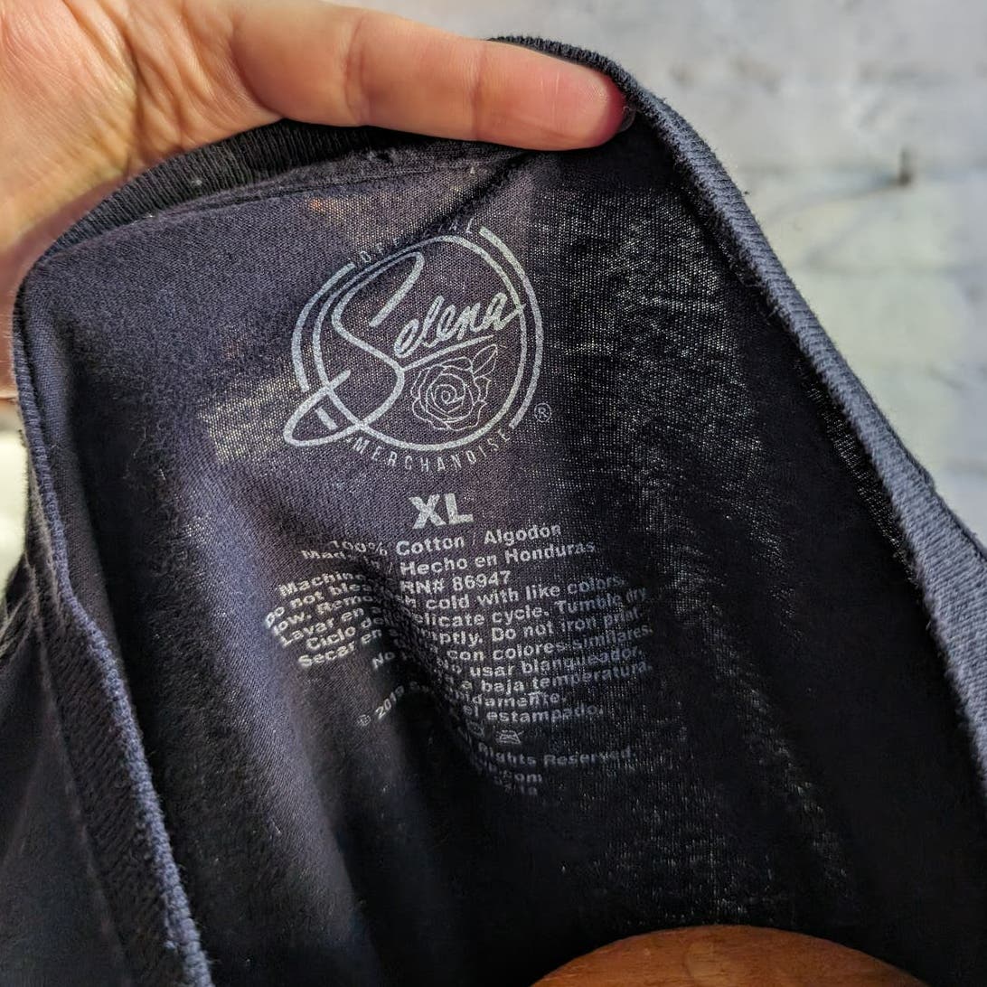Selena! So much 90s nostalgia here I'm totally loving this one. Super soft dope little 100% cotton graphic tee in faded black. Sexy cropped boxy fit with raw hem. Large Selena graffiti style print and iconic Como La Flor spellout in bold contrast red and blue. Dark romance soft girl does pop princess baddie vibes. Gently used, in excellent condition.