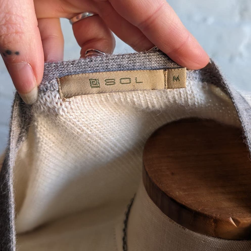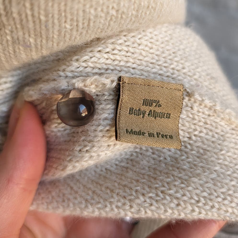 Love this dope little neutral earthy cream tone 100% baby alpaca knit cardigan! Similar styles from Sol Alpaca retail for $289+! Coogi style embroidery in delicate muted grey tones. Cottagecore lagenlook does fairy boho chic does funky hippie granola girl vibes. Glass bead button front. Classic design with good stretch. Soft and lightweight yet cozy, perfect for layers. Minor pilling, small repair on cuff - see photos. Gently used, in excellent condition.
