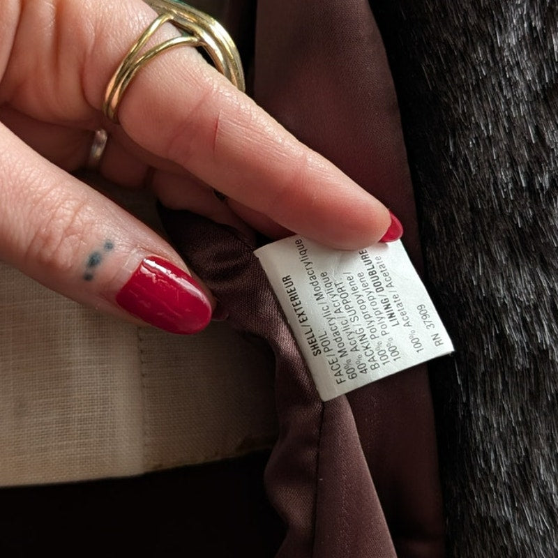 So loving this super sexy vintage classic! 70s chic mob wife boss babe does 90s grunge goth baddie vibes. Super cozy warm and soft. Gorgeous silky soft plush faux fur in jet black. Classy understated ribbed pattern, lightly structured shoulders. Front clasp closures, pockets! Full silky soft lining, longline silhouette. Midweight perfect for layering or as a solo winter fur. Hits mid thigh on 5’4 model. Minor wear at pocket trim. Spot on lining at tag. Gently used, in very good vintage condition.