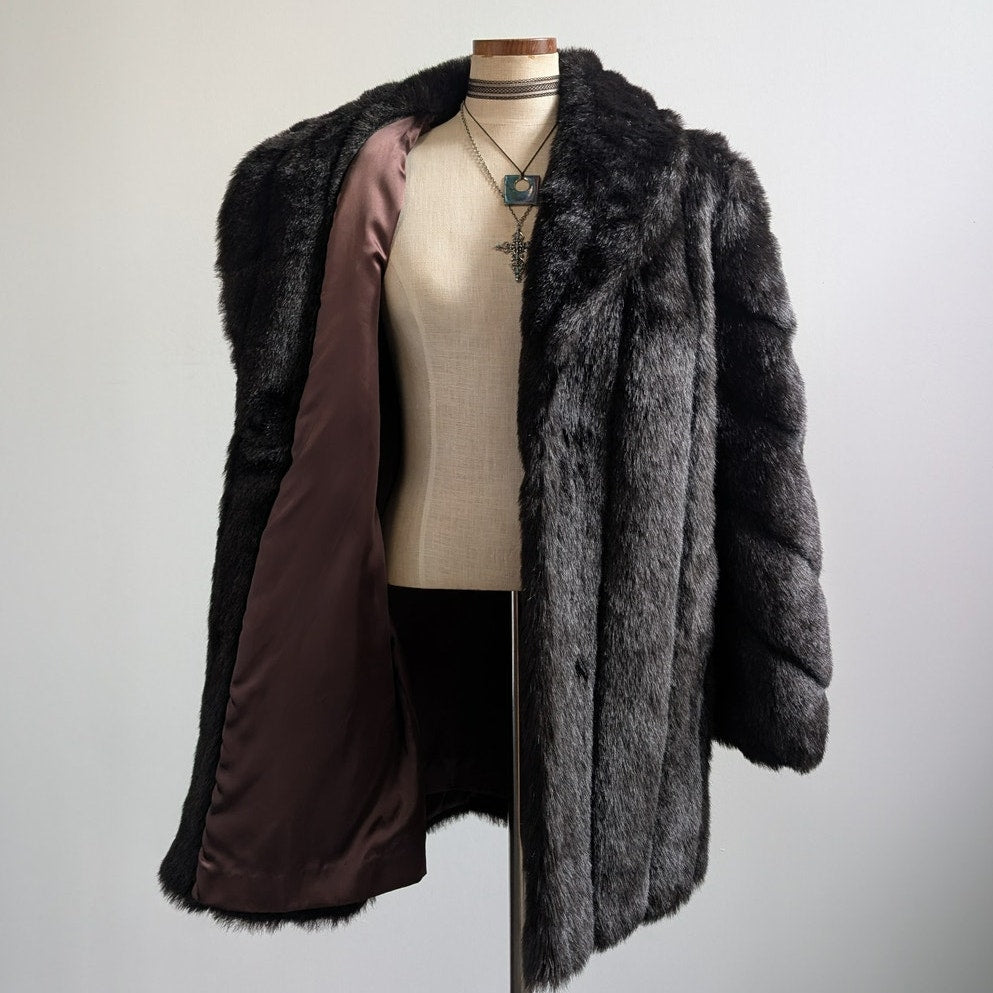 Vintage Black Faux Fur Coat Shaggy Mob Wife Grunge Minimalist Glam Cozy Jacket