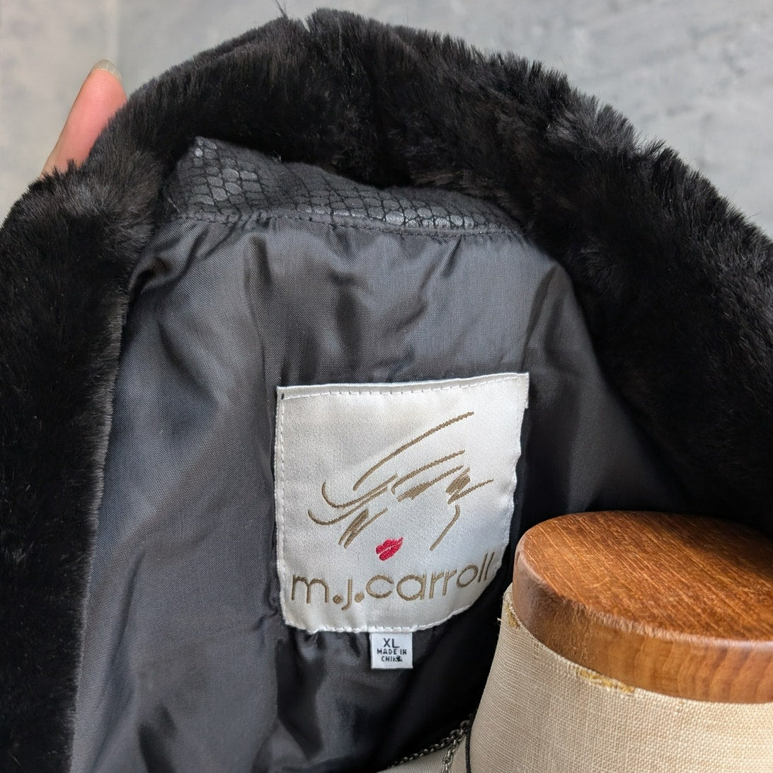 Vintage Black Leather Snakeskin Trench Coat Penny Lane Grunge Faux Fur Jacket