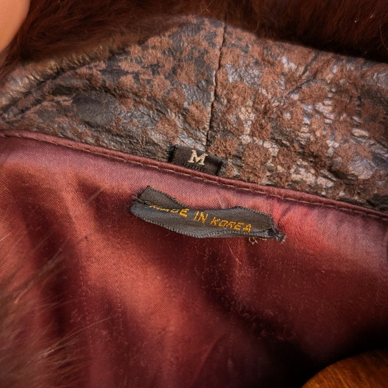 So chic so sexy! Gorgeous vintage genuine leather penny lane trench coat in brown black with fuzzed out real fox fur shaggy plush collar. 80s biker baddie babe does 70s almost famous rockstar girlfriend vibes. Gorgeous snakeskin pattern, accent lining. Full length clasp closures. Shoulder pads, pockets, longline silhouette. Mid - heavy weight, cozy. Perfect for layers. Gently used, in excellent vintage condition.