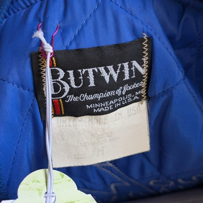 Super cute vintage varsity bomber jacket in classic royal blue! 70s cheerleader babe does y2k street chic vibes. This coat belonged to a well decorated 'Diana' - embroidered on right chest with all original vintage pins! Blue and white striped stretchy knit cuffs, full quilted thermal lining. Roomy pockets, snap button front closure. 'Liberty Drill Team' on back. Mid-weight. Some spots and snags, see photos. Gently used, in good vintage condition.