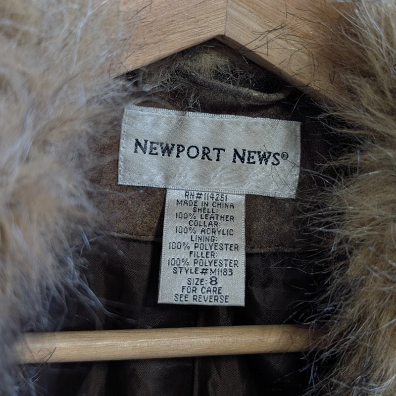 Vintage Brown Leather Fur Penny Lane Jacket Groovy Afghan Almost Famous Y2K Coat