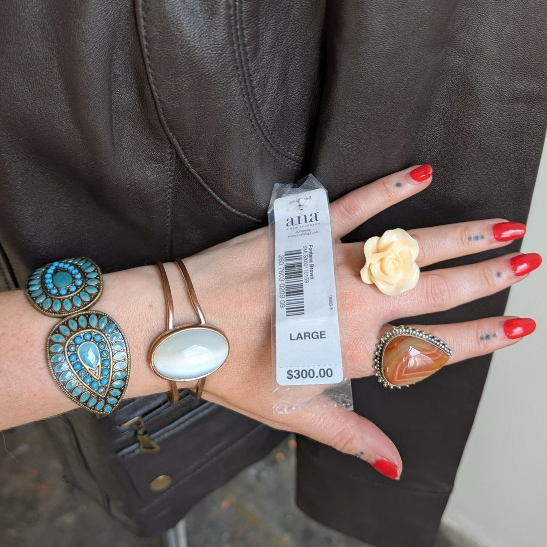 Vintage Brown Leather Jacket Faux Fur Lambskin Moto Chic Biker Bomber Coat Large