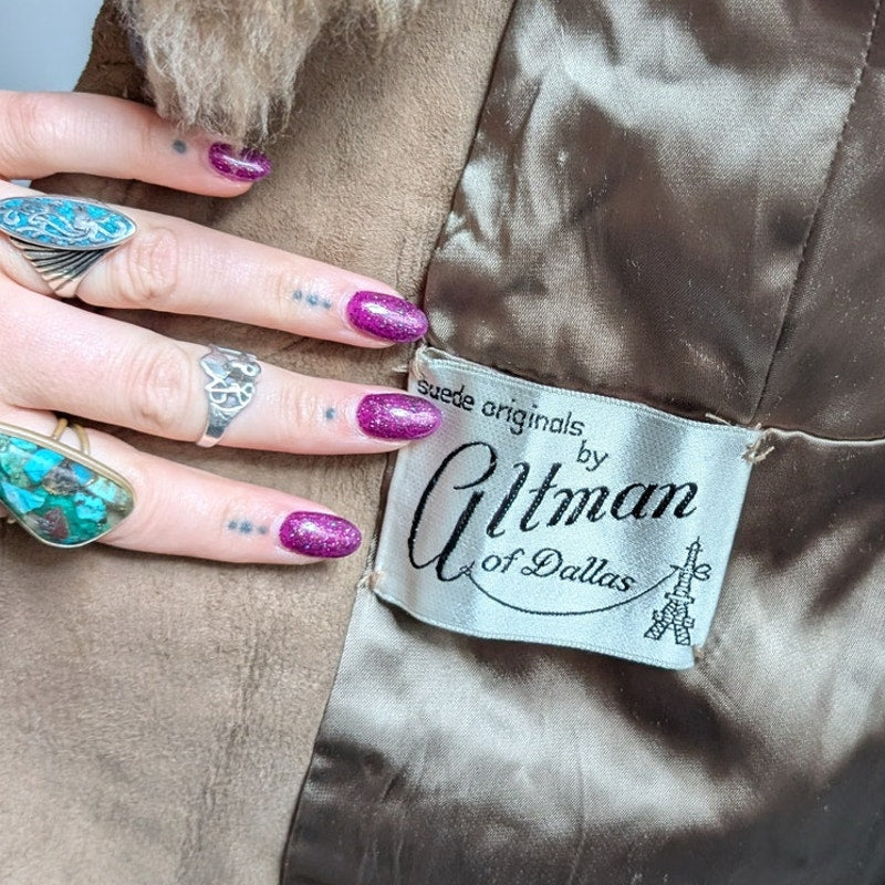 Vintage Brown Leather Penny Lane Coat Tan Suede Fur 70s Afghan Jacket Medium