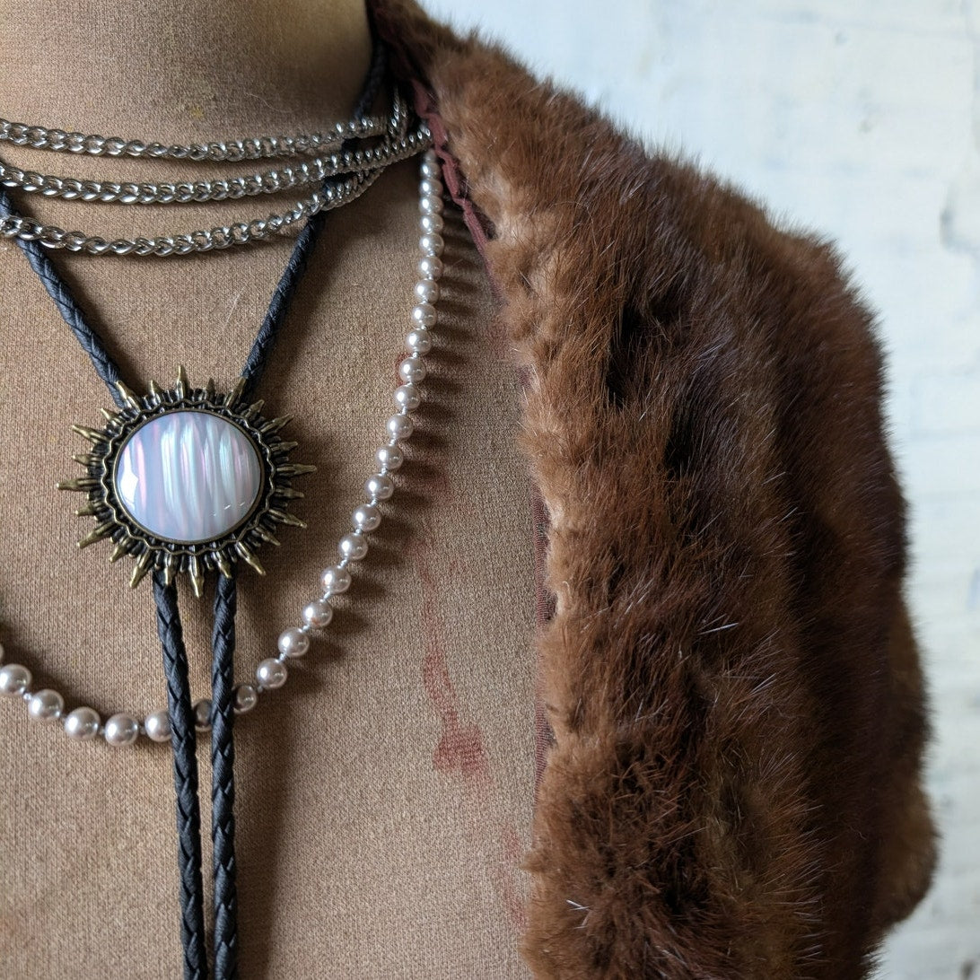 Vintage Brown Mink Fur Stole Scarf Mob Wife Shawl Genuine Furry Boho Chic Shrug