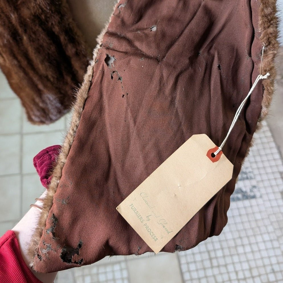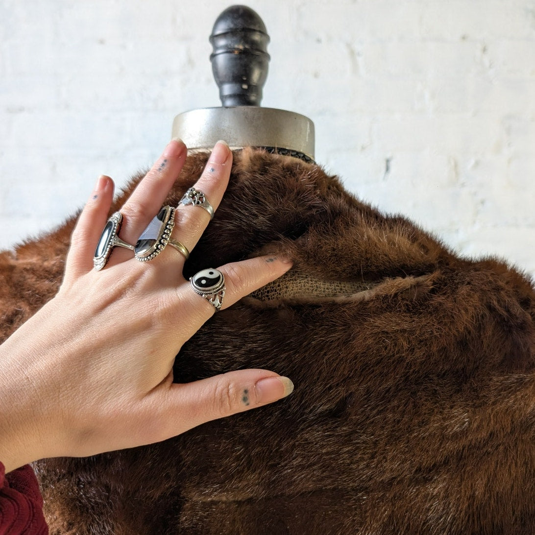 GORGEOUS for my baddies on a budget! Has damage - selling AS IS! Read + see all photos! Beautiful vintage genuine mink fur slouchy stole shawl in deep chocolatey brown with warm auburn hues. Old money western movie starlet does Y2K glam punk baddie vibes. Gorgeous longline silhouette with sexy draped look. Open front, pockets! Great for a festival look or upcycle. In fair vintage condition.