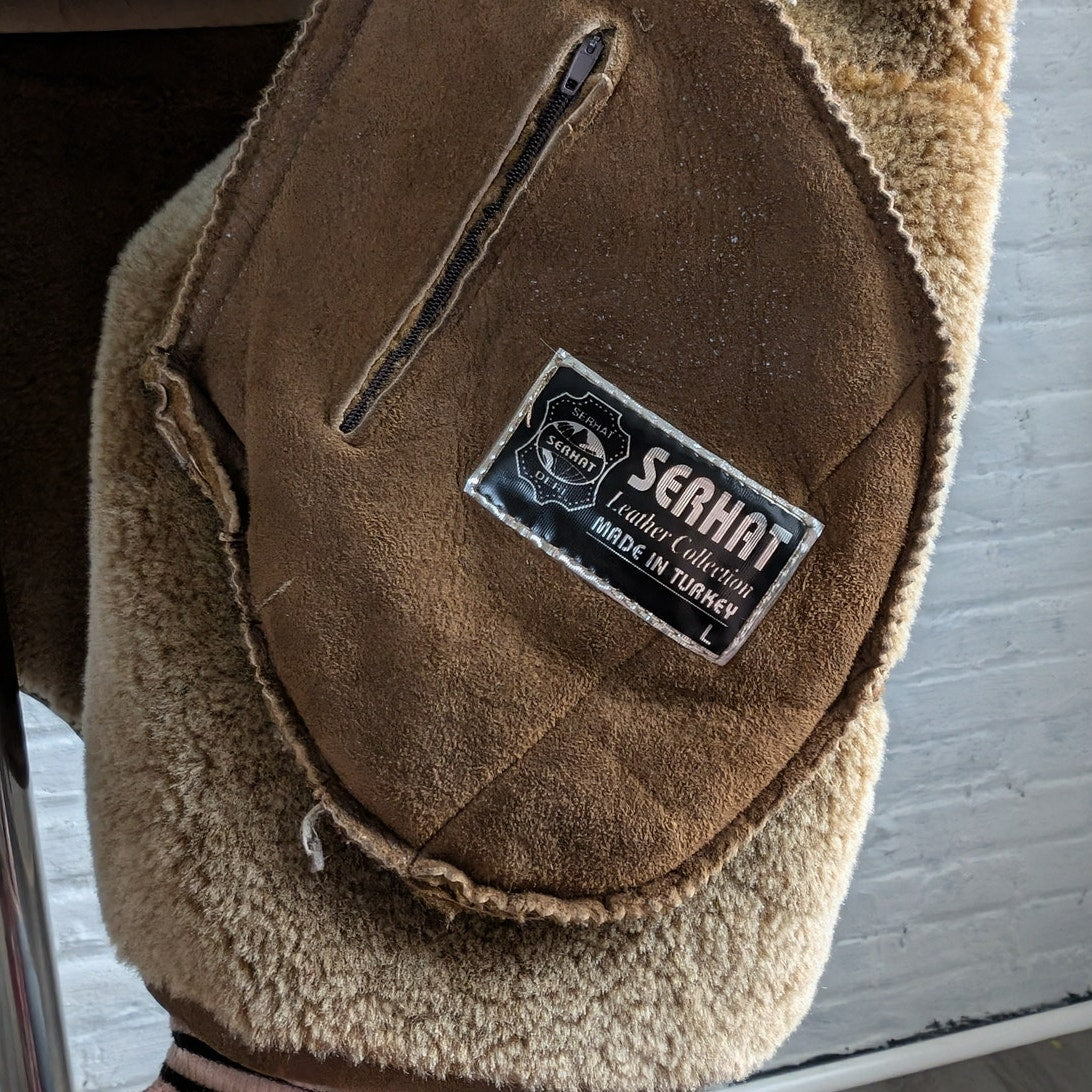 Vintage Brown Suede Leather Penny Lane Coat Minimalist Western Shearling Jacket