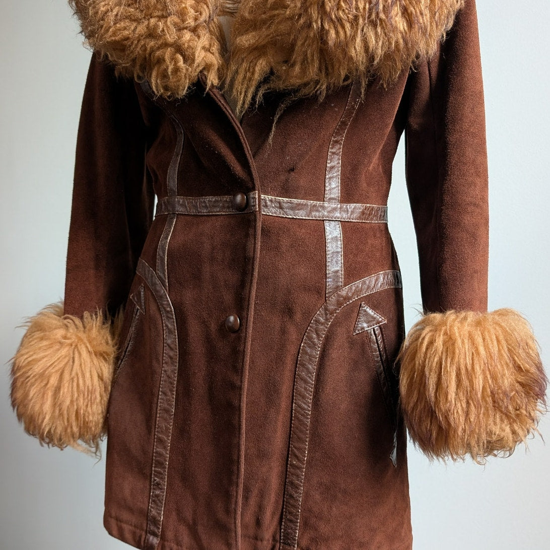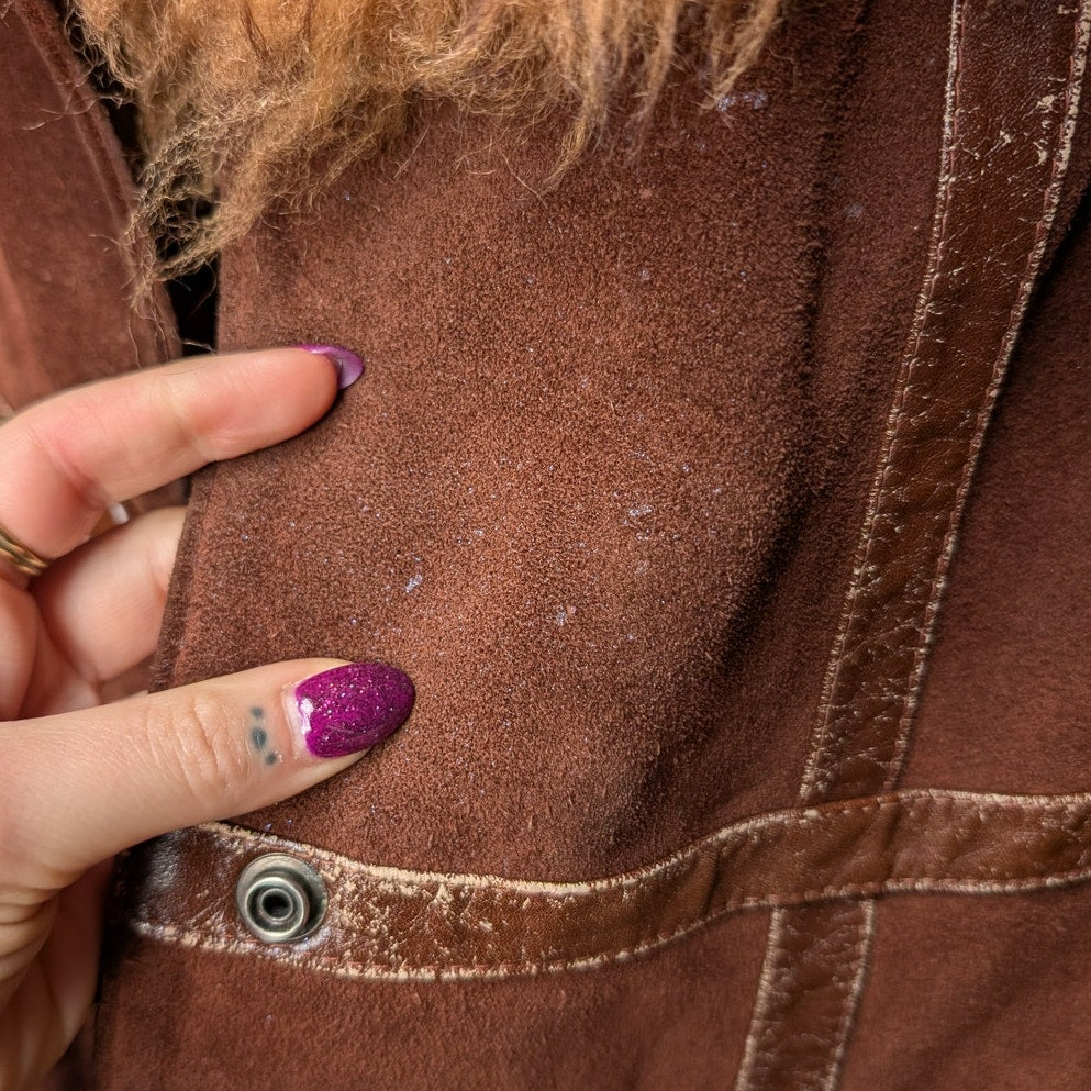 Vintage Brown Suede Penny Lane Jacket Groovy Fur Coat 70s Leather Western Medium