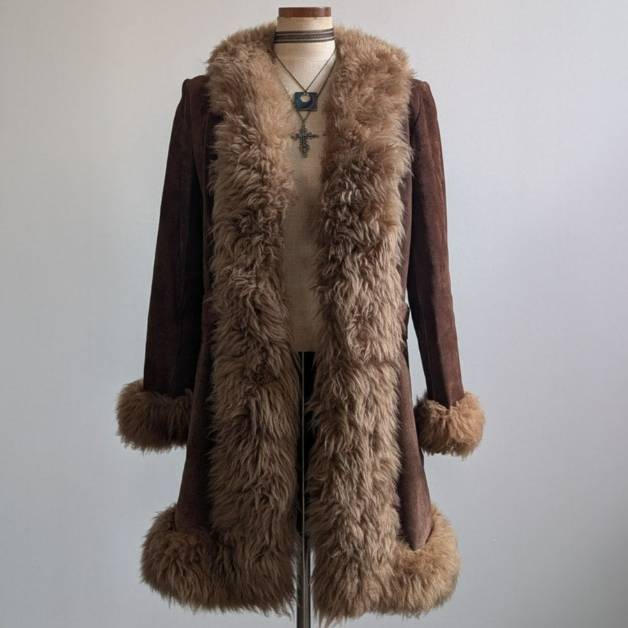 Vintage Brown Suede Penny Lane Jacket Fur Furry Leather Groovy Mod Trench Coat